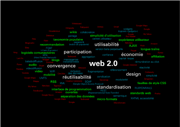 3. Veille concurrentielle et technologiqueA l'heure actuelle, Internet est devenu le moyen de communication le plus prometteur, mais également un véritable outil pour les entreprises tant pour la publicité, la promotion de ses produits, que pour échanger avec ses clients, ses fournisseurs. Or ce média est en pleine reconversion, on parle aujourd'hui de web 2.0, mais qu'est ce donc exactement, quelles sont les implications pour les entreprises ? Comment doivent-elles réagir ? - l'avènement du web 2.0 Une première définition proposée sur Wikipédia nous permet de cerner le sujet : « terme souvent utilisé pour désigner ce qui est perçu comme une transition importante du World Wide Web, passant d'une collection de sites Web à une plate-forme informatique à part entière, fournissant des applications Web aux utilisateurs. Les défenseurs de ce point de vue soutiennent que les services du Web 2.0 remplaceront progressivement les applications de bureau traditionnelles » A l'origine, la toile était constituée de pages web statiques, rarement mises à jour, puis nous sommes passés à un web plus dynamique où des systèmes de gestion de contenu servaient ces pages créées à la volée à partir d'une base de données en constant changement. Internet était alors considéré comme le support permettant de diffuser des données tout en les visualisant. Mais aujourd'hui, cela va plus loin, les partisans du web 2.0 estime que la toile doit devenir un véritable portail d'échanges, autrement dit s'orienter non plus vers les sites proprement dit mais les utilisateurs du web. En pratique, des sites ou service reprenant les applications du web 2.0 sont ceux sur lesquels un utilisateur peut donner son avis, noter un produit, modifier les informations sur celui-ci. Un bel exemple est celui de wikipedia, l'encyclopédie entièrement réalisée par des internautes où chacun peut ajouter des données afin de compléter les définitions proposées. Amazon fut également l'un des premiers à mettre en oeuvre ces pratiques en proposant à ses utilisateurs de se noter entre eux, les articles qu'ils proposaient etc.