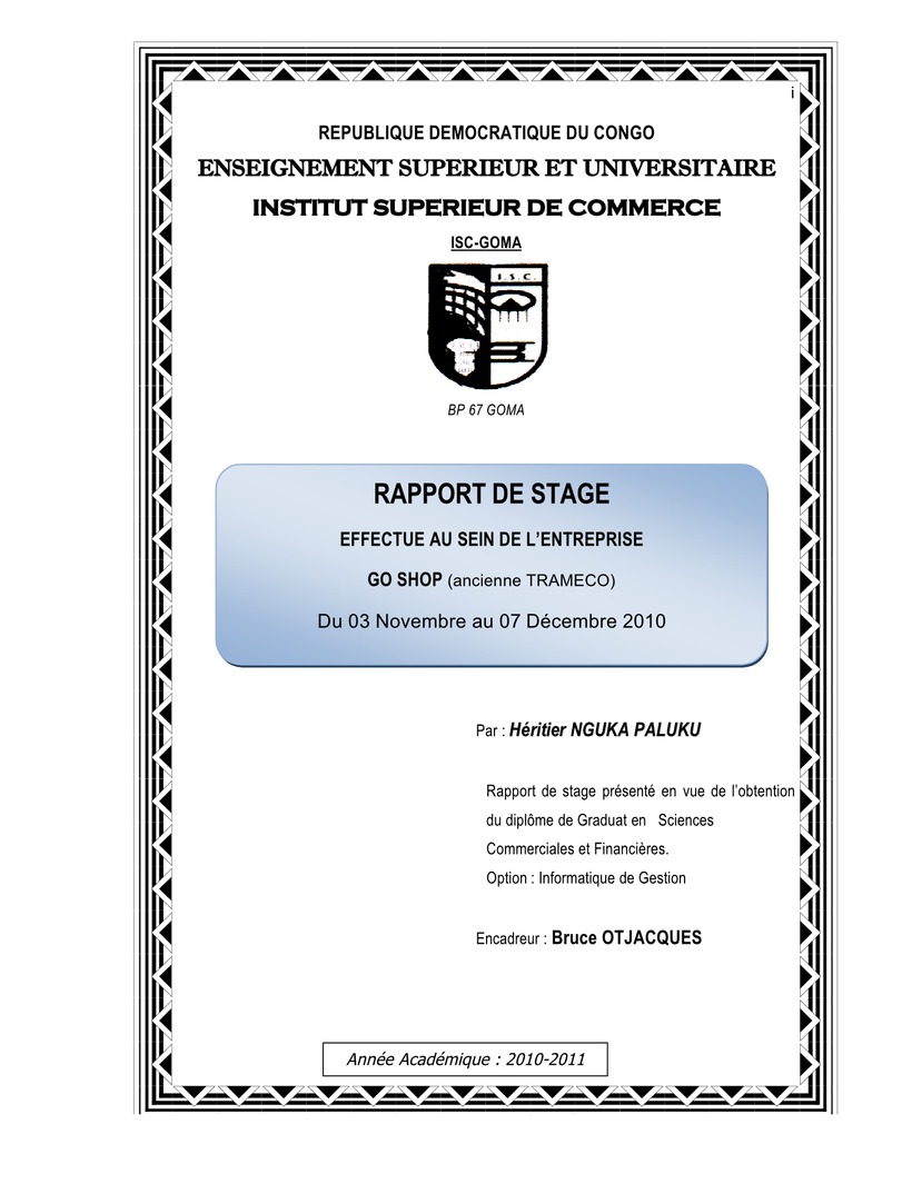 Conception pour la gestion d'un système d'information pour la gestion des stocks dans une entreprise commerciale. Cas de l'entreprise Goshop