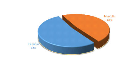 Le sexe féminin était dominant avec 52% contre