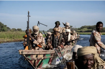 Source : Page Facebook du ministère tchadien des Armées (https:/www.facebook.com/profile.php?id-6155809181148) PHOTO 3 : Des soldats tchadiens patrouillant sur les méandres du Lac-Tchad, le 29 novembre 2022, au poste avancé de Bouka Toulorom.