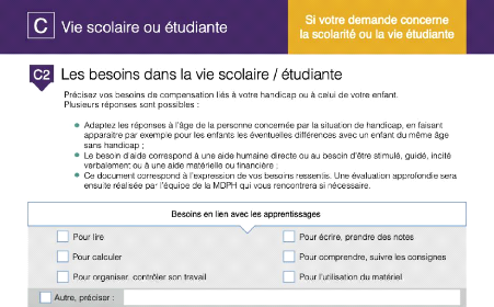 Annexe 1 : Extrait du formulaire de demande à la MDPH (Cerfa n°15692*01)