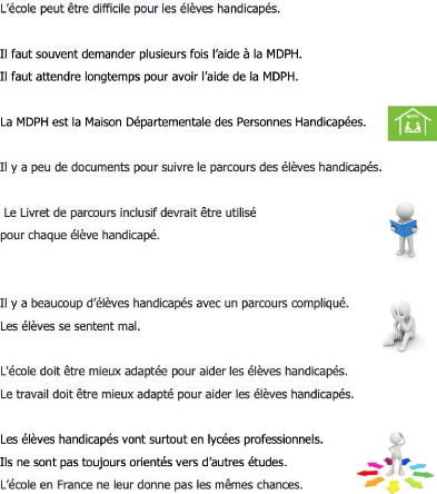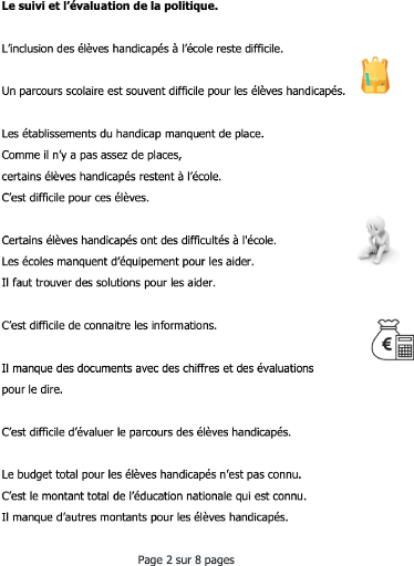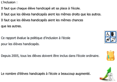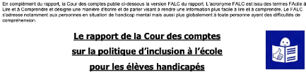 Annexe 3 : Rapport de la Cour des comptes sur la politique d'inclusion à l'école pour les élèves handicapés, en FALC (facile à lire et à comprendre)