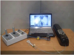 software running on the laptop, VSP haptic device, fluoroscopic view console,
