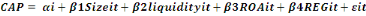 3) Présentation de modèle à estimer : Nous sommes intéressés par l'impact de la réglementation prudentielle sur le capital des banques et la prise de risque. Pour cela, nous spécifions un modèle qui relie soit la capitalisation ou le risque à des variables explicatives telles que la taille, la liquidité, ROA, et la pression réglementaire. Contrairement aux hypothèses de l'ajustement partiel effectué dans les études précédentes, dans cet étude , nous supposons que les banques Tunisiennes sont capables d'ajuster instantanément leurs niveaux de risque et de capital. Selon l'hypothèse de la réglementation, une relation positive doit exister entre le niveau de capital et les incitations à prendre des risques. En effet, le capital agit comme un tampon; de sorte que les banques doivent augmenter leur niveau de capital en réponse à une augmentation du risque. Une autre hypothèse est expliquée par le problème de l'aléa moral · Interaction entre le capital réglementaire et le risque : Nous essayons d'identifier les interactions de la réglementation prudentielle sur l'augmentation de capital de la banque et la réduction du risque de crédit. Pour cela, nous allons utiliser les équations simultanées pour capturer l'interrelation entre les changements dans le capital des banques et des risques. La stratégie est que les variables endogènes (risque, capital) peuvent être utilisés comme variables explicatives dans notre modèle. Après Shrieves et Dahl (1992), Rime (2001), et Altunbaset al. (2007), Bougatef et Mgadmi ont spécifié un système d'équations comme suit : Equation1: Equation 2 Risk =