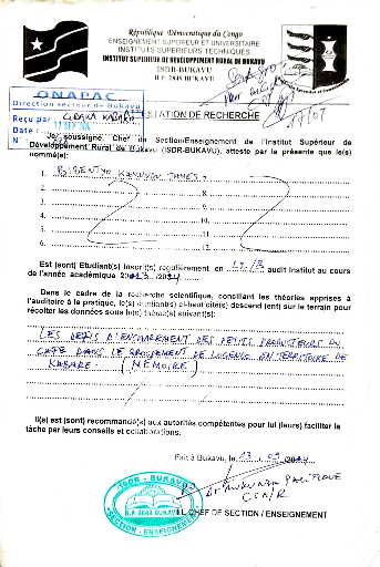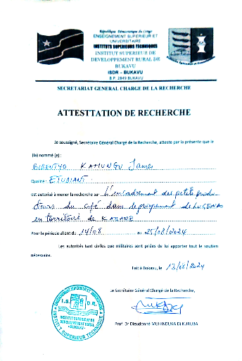 ANNEXE 4 : ATTESTATION DE RECHERCHE