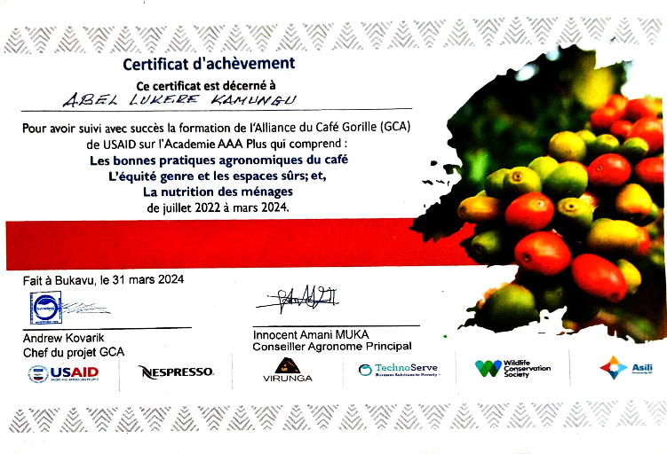 5 : Certificat octroyé par la société Virunga coffee