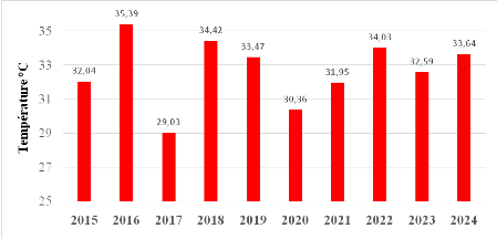 plus basse a été enregistrée en 2017 avec 29,03°C,