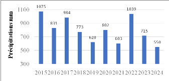 collectes annuelles oscillent entre un maximum de 1075 mm en 2015 et un minimum