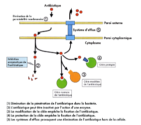 parlesquellesl'antibiotiquepeutpénétrerdanslabactérie)eteffluxactif