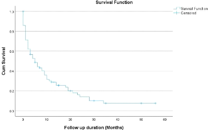 médiane était de 5 mois IC 95% [3.6-6.4]. Par ailleurs, les taux
