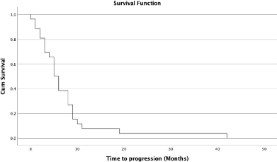 était de 5 mois IC 95% [2.2-7.7]. La survie sans progression (SSP)