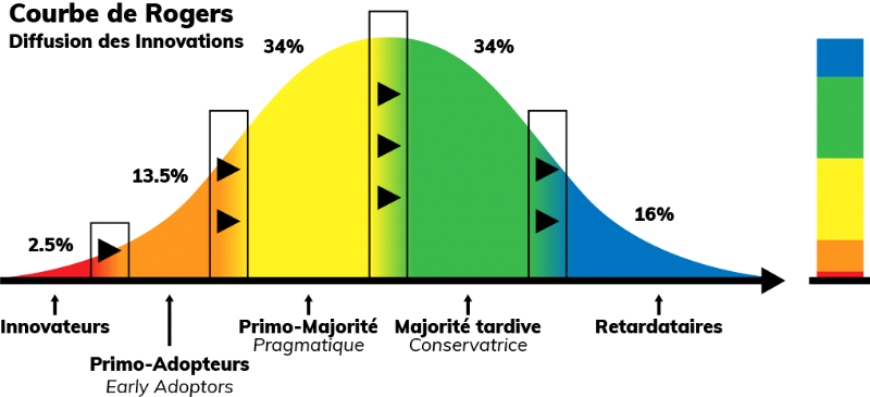 marché sature. Il distingue cinq types d'adoptants, des innovateurs
