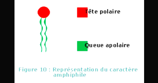 (hydrophobe) qui pousse l'eau. Le caractère amphiphile est très