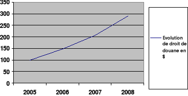 Tableau 7 : Evolution de droits de douane (en $US) de 2005 à 2008