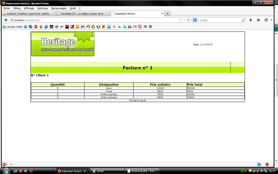 Conception et réalisation d'une application web pour la gestion des ventes des produits cosmétique