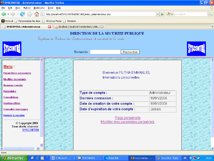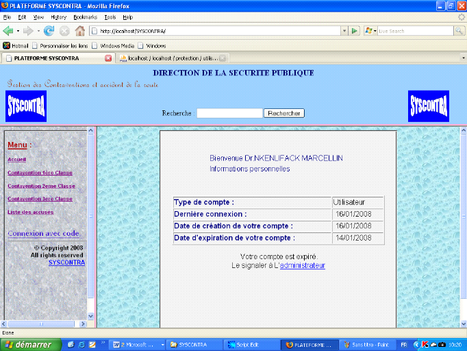 Utilisateur contiendra des informations sur les contraventions et accident de
