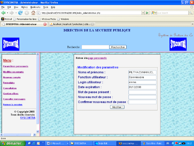 utilisateur » en vu de modifier ses paramètres personnels.