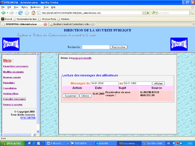 le 16-01-2008 et dont l'objet est « Réactivation de mon
