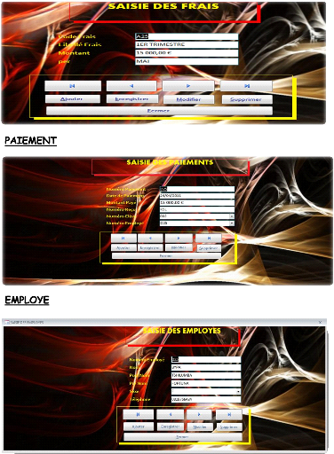 de la fenetre principale de Visual Basic et :