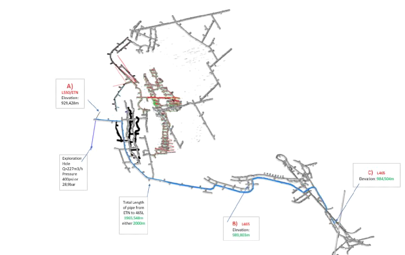 ainsi que la présentation de l'exhaure dans la mine souterraine de