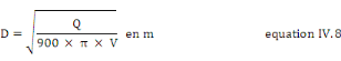 · V : vitesse moyenne d'écoulement de l'eau dans
