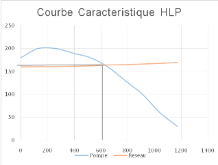 courbe caractéristique de pompes et la courbe de l'installation sera le