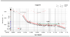 avec un pendage de 40% du Nord-Ouest vers le sud et entre 405 et 575m de